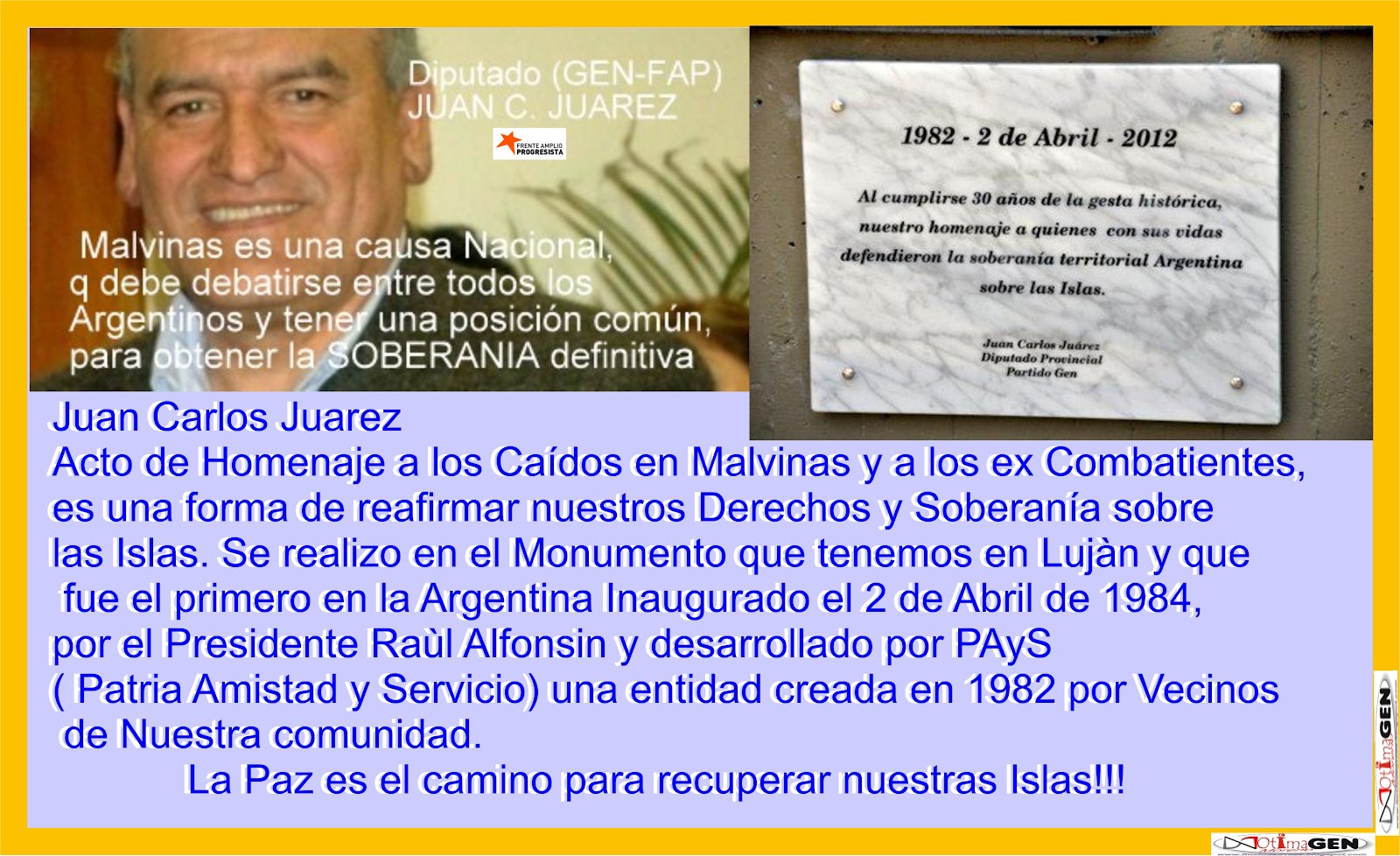 *MALVINAS 30 AÑOS: HISTORIA DE UN HEROE* “El coronel Jones fue uno de los que comandó el ataque, aún no entiendo porque estaba al frente de ese avance, supongo que nos creyó muertos. Cuando lo vi venir le disparé una ráfaga de disparos que alcanzaron a herirlo. Aún así intentó tomar una granada pero con una segunda ráfaga de disparos acabé con su vida” Ampliar...
