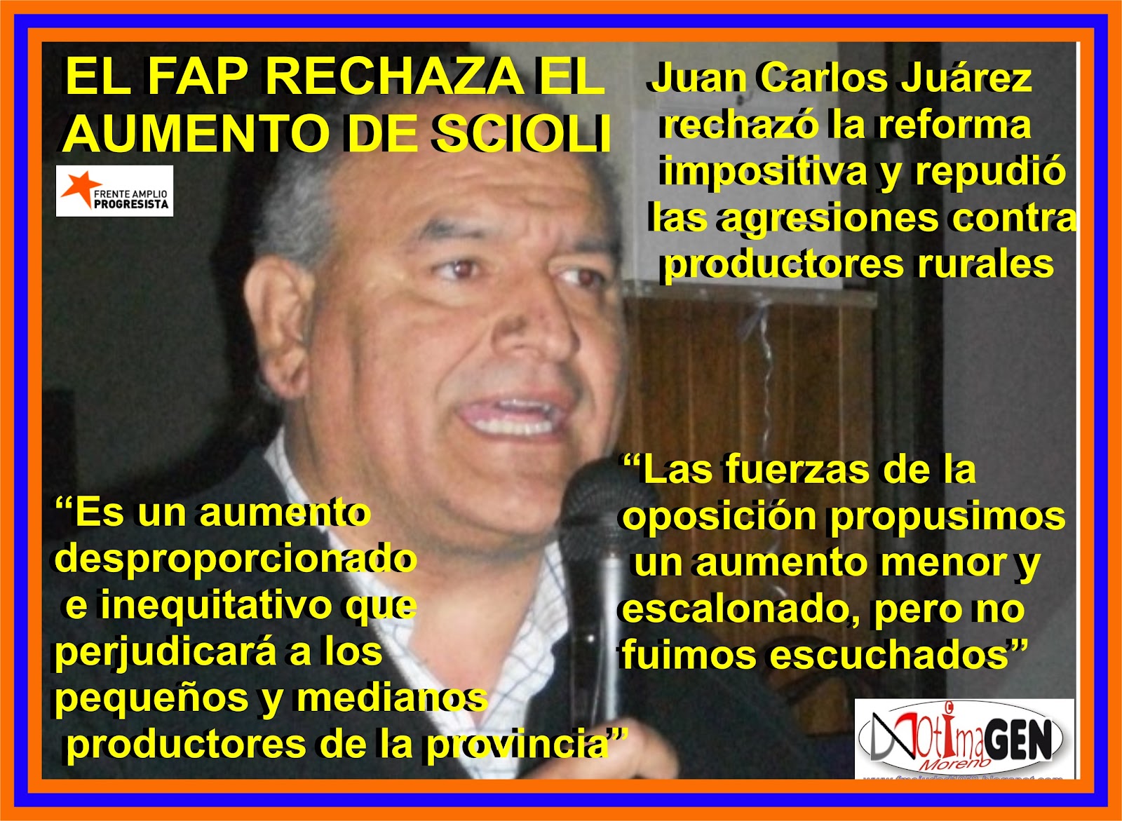 IMPUESTAZO de SCIOLI*Para el FAP, el impuestazo depende de "la pelea entre Scioli y CFK" Así lo afirmó el diputado provincial, Juan Carlos Juárez. Habla de un llamado de Nación a los legisladores K "para no negociar nada". Las cuentas de la provincia al rojo vivo.