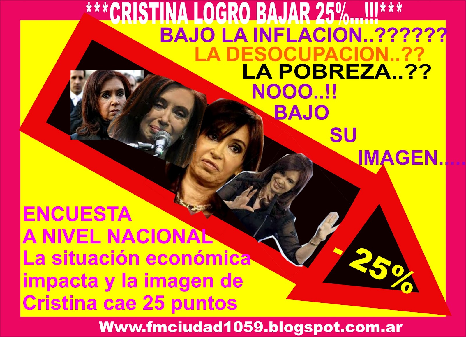 *ENCUESTA A NIVEL NACIONAL* La imagen de Cristina cae 25 puntos Preocupan inflación y desempleo. Además retroce la aprobación de la gestión oficial.