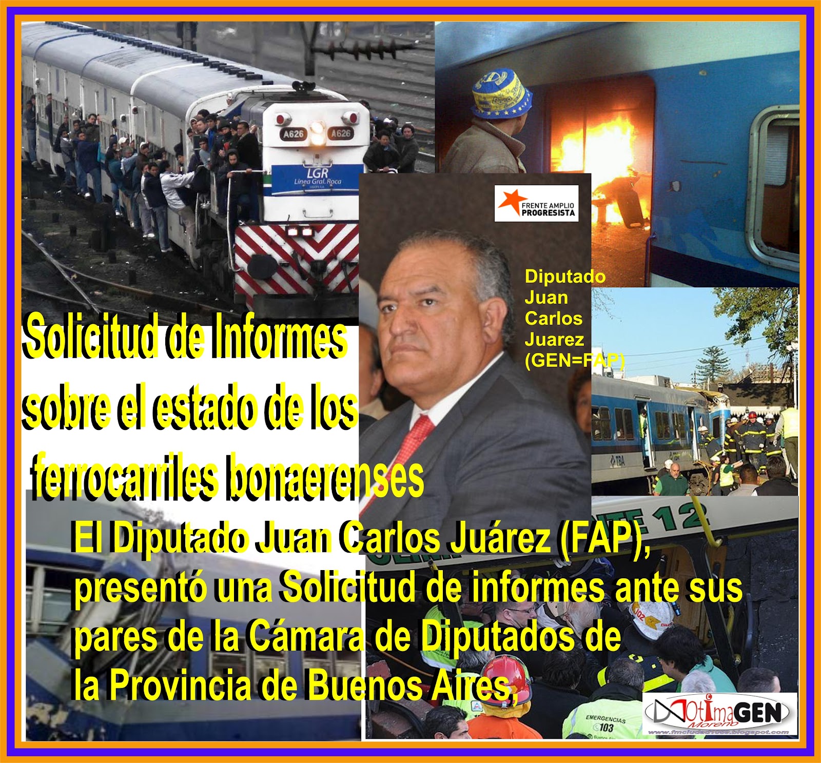 (AGP).- (La Plata).- El Diputado Juan Carlos Juárez (FAP), presentó una Solicitud de informes ante sus pares de la Cámara de Diputados de la Provincia de Buenos Aires, para que el Poder  Ejecutivo bonaerense informe sobre la situación de los Ferrocarriles que de él dependen. Entre los fundamentos  del proyecto el Legislador repasa la