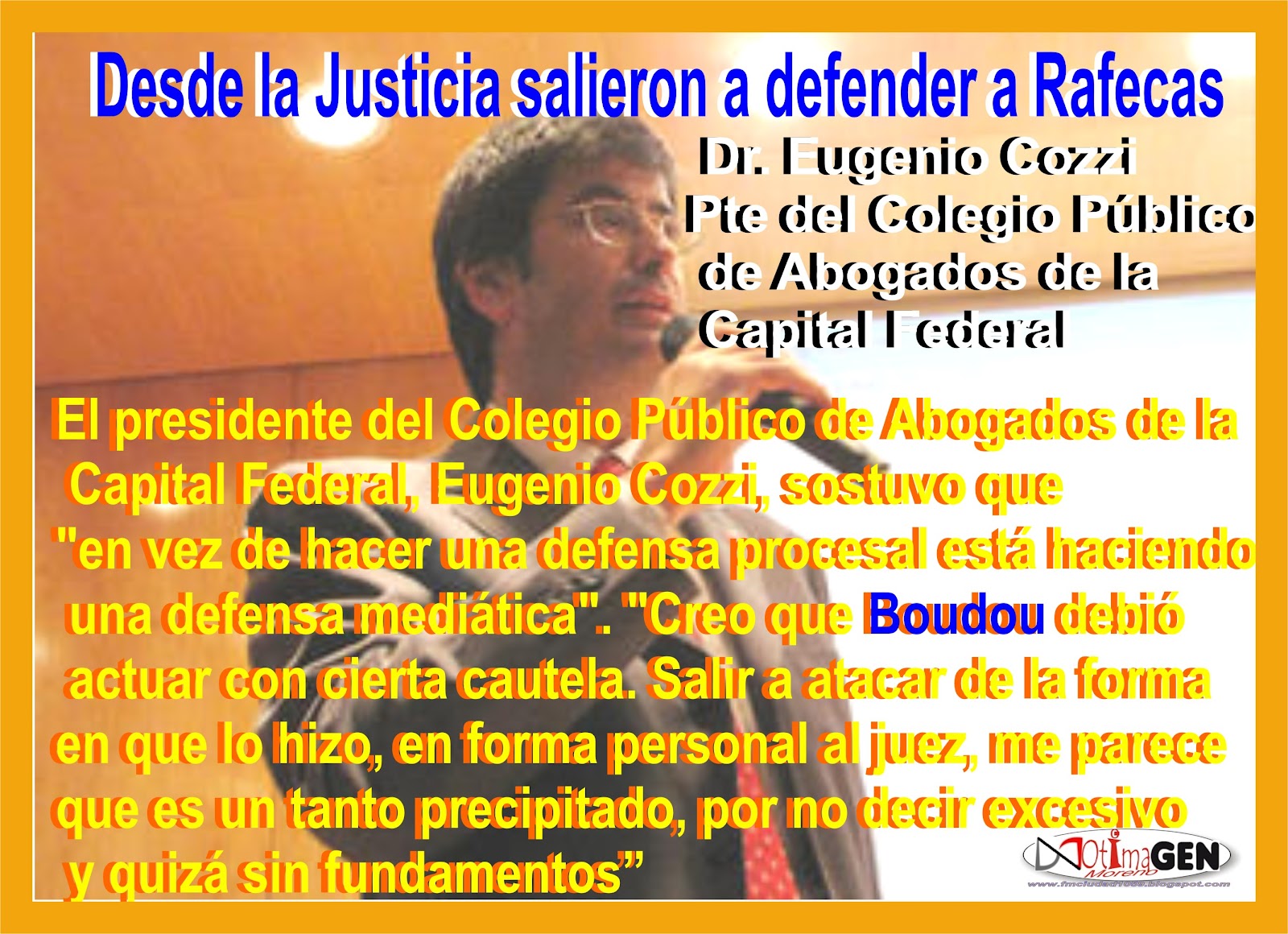 La Justicia no tardó en responderle al vicepresidente Amado Boudou por sus dichos contra el juez Daniel Rafecas. El juez Luis María Cabral, presidente de la Asociación de Magistrados y Funcionarios de la Justicia Nacional e integrante de la Cámara Nacional de Casación Penal, dijo a la agencia DYNestar "sorprendido por las declaraciones de Boudou que involucran a quien es considerado un reconocido, prestigioso e imparcial juez como Rafecas. Estas no son formas de responder a lo que pueda suceder en una causa".ampliar