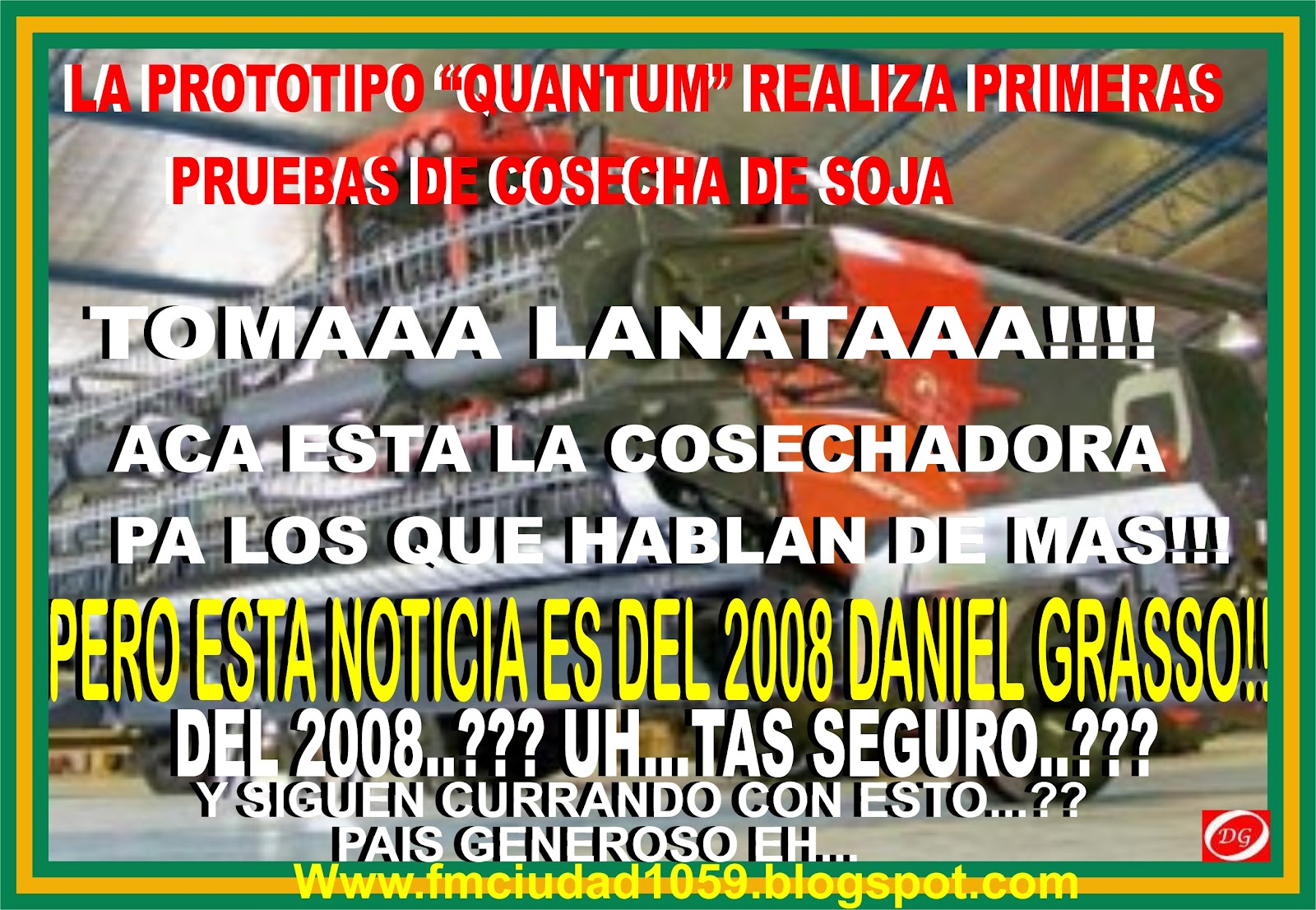 Ya está lista la primera cosechadora Quantum de la firma Maagfor del grupo Senor, establecido en el Parque Industrial de esta ciudad que fue ensamblada y soldada por manos formoseñas y tiene como proyección el mercado internacional.*YANQUEES SOCIOS EN YPF..???*2 empresas exigen aumentar precio del gas y privilegios impositivos*